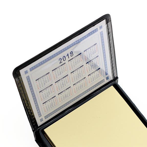 外殼為黑色PU,內包含雙色便簽本各2本,每本100張,8色便簽條,每色200張,另帶1張2年日曆卡