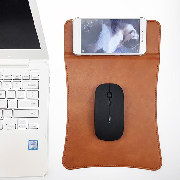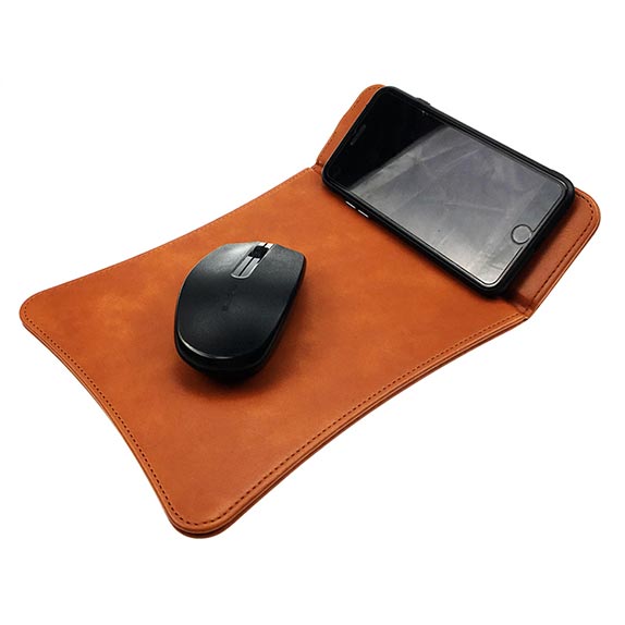 型格PU皮座枱無線充電器, 一邊差電, 另一邊可作滑鼠墊用, 拉開也可用電話支架, 多功能, 時尚獨特